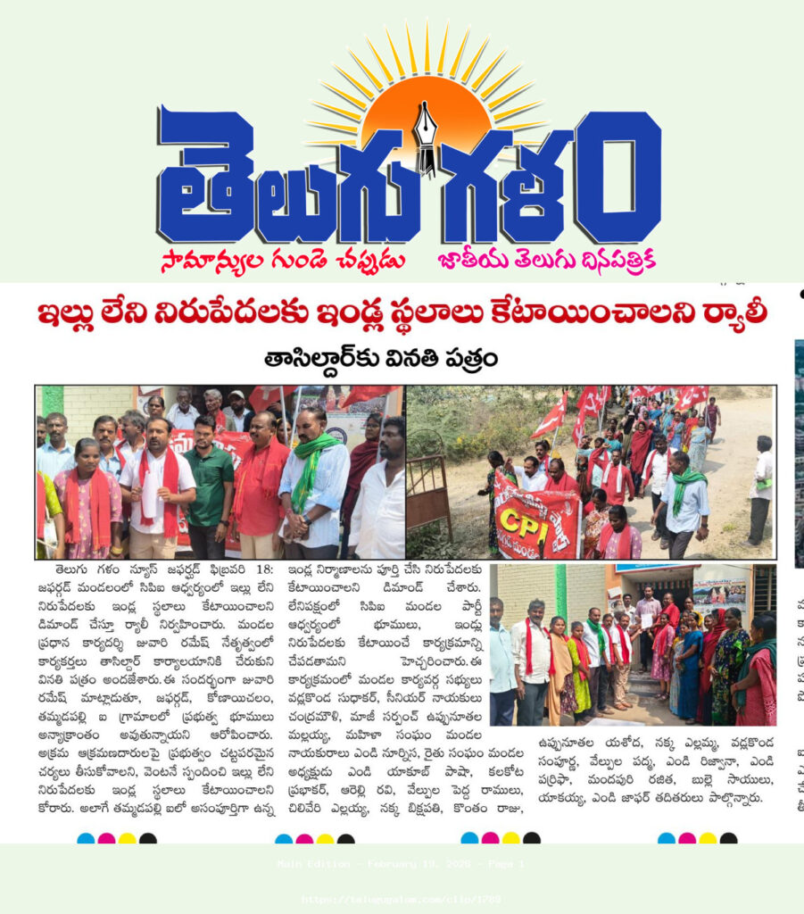 ఇండ్లులేని నిరుపేదలకు ఇండ్ల స్థలాలు కేటాయించాలని సిపిఐ డిమాండ్ E69NEWS February 19, 2026 0 About the Author E69NEWS Administrator Visit Website View All Posts Post navigation Previous: స్టేషన్ ఘనపూర్ లో సంత్ సేవా లాల్ మహరాజ్ జయంతి వేడుకలపై సమీక్ష సమావేశంNext: మరిపెడ మున్సిపల్ చైర్ పర్సన్ గా వీసారపు ప్రగతి Leave a Reply Cancel replyYour email address will not be published. Required fields are marked *Comment * Name * Email * Website Save my name, email, and website in this browser for the next time I comment.