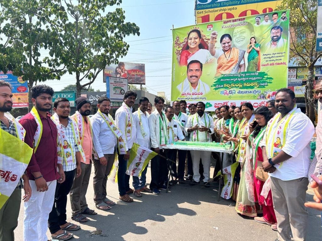 తెలంగాణ జాగృతి అధ్యక్షురాలు కల్వకుంట్ల కవితక్క జన్మదిన వేడుకలు కరీంనగర్లో ఘనంగా నిర్వహించారు.ఈ సందర్భంగా ముందుగా మార్కెట్లోని శ్రీ వెంకటేశ్వర స్వామి ఆలయంలో కవితక్క పేరు మీద ప్రత్యేక అర్చన కార్యక్రమం నిర్వహించారు.బీసీ విభాగం జిల్లా అధ్యక్షుడు శ్రీరాములు రమేష్ ఆధ్వర్యంలో పేదలకు అల్పాహారం పంపిణీ చేశారు. జిల్లా సీనియర్ నాయకుడు రంగరవేణి లక్ష్మణ్ ఆధ్వర్యంలో తెలంగాణ చౌక్లో భారీ కేక్ కటింగ్ చేసి స్వీట్స్ పంపిణీ చేశారు.అలాగే జిల్లా మహిళా విభాగం అధ్యక్షురాలు అక్కం శివరాణి ఆధ్వర్యంలో బిట్ వద్ద ఉన్న వృద్ధాశ్రమంలో పండ్లు పంపిణీ చేశారు. జిల్లా సీనియర్ నాయకుడు బసవేణి రాజేందర్ ఆధ్వర్యంలో వీరబ్రహ్మేంద్రస్వామి అనాథ వృద్ధుల ఆశ్రమంలో కూడా పండ్లు పంపిణీ చేశారు.జిల్లా ప్రధాన కార్యదర్శి మ్యాకల తిరుపతి, జిల్లా నాయకులు గుండేటి తిరుపతి ఆధ్వర్యంలో స్పందన వృద్ధుల అనాథాశ్రమంలో అన్నదానం కార్యక్రమం నిర్వహించారు.ఈ సందర్భంగా తెలంగాణ జాగృతి జిల్లా అధ్యక్షుడు గుంజపడుగు హరిప్రసాద్ మాట్లాడుతూ, సామాజిక తెలంగాణ లక్ష్యంగా బడుగు బలహీన వర్గాల కోసం కవితక్క నిరంతరం పోరాడుతున్నారని తెలిపారు. ప్రజల మధ్యలో ఇలాంటి జన్మదిన వేడుకలు జరపడం ఆనందకరమని అన్నారు.వెలుగుమట్ల బాధితులకు న్యాయం జరగడంలో కవితక్క చేసిన పోరాటం ముఖ్య పాత్ర పోషించిందని చెప్పారు. రాష్ట్రంలో ప్రతిపక్షం, పాలకపక్షం రెండూ ఒకేలా వ్యవహరిస్తున్నాయని విమర్శించారు. కవితక్క మరెన్నో ఉన్నత శిఖరాలను అధిరోహించి పేదలకు సేవలు అందించాలని కోరుకుంటున్నామని అన్నారు.ఈ కార్యక్రమంలో జాగృతి జిల్లా నాయకులు చంటి శ్రీనివాస్, గాలిపల్లి రత్నాకర్ చారి, జంగ అపర్ణ, పిన్నింటి సంగీత రెడ్డి, గర్శకుర్తి విద్యాసాగర్, ఎండీ సల్మా, పోన్నం శిరిష, అంజలి, పుసాల పవన్, లంక మనోజ్, మహమ్మద్ హుస్సేన్, ఎండీ యాకుబ్, రంగరవేణి ఆకాశ్, హుస్నాబాద్ రాజ్కుమార్, నవ్య తదితరులు పాల్గొన్నారు.