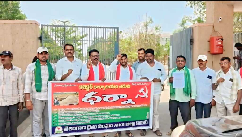 తెలంగాణ రైతు సంఘం ఆధ్వర్యంలో జనగామ జిల్లా కలెక్టర్ కార్యాలయం ఎదుట రైతులు భారీ ఎత్తున ధర్నా నిర్వహించారు. అనంతరం రైతాంగ సమస్యలపై వివిధ డిమాండ్లతో కూడిన వినతి పత్రాన్ని జిల్లా కలెక్టర్కు అందజేశారు.అదే సమయంలో కలెక్టర్ కార్యాలయంలో జరిగిన సమీక్ష సమావేశానికి హాజరైన స్టేషన్ ఘన్పూర్ ఎమ్మెల్యే కడియం శ్రీహరికి కూడా రైతుల సమస్యలను వివరిస్తూ వినతి పత్రం సమర్పించారు.జనగామ మండలంలోని గాను పహాడ్ క్రాస్ వద్ద కూడా రైతులు పెద్ద ఎత్తున ఆందోళన చేపట్టారు.ఈ సందర్భంగా రైతు సంఘం నాయకులు జిల్లాలోని ధాన్యం, మొక్కజొన్న కొనుగోలు కేంద్రాలను పరిశీలించి పలు సమస్యలను గుర్తించినట్లు తెలిపారు.రైతులు ఎదుర్కొంటున్న ప్రధాన సమస్యలు—ధాన్యం కొనుగోలులో జాప్యం, ట్రాన్స్పోర్ట్ లారీల కొరత, గన్ని సంచుల లభ్యత లేకపోవడం, మిల్లర్ల అక్రమాలు—తక్షణమే పరిష్కరించాలని డిమాండ్ చేశారు. అలాగే షాటేజీ పేరుతో రైతులపై భారం మోపుతున్న మిల్లర్లపై చర్యలు తీసుకోవాలని కోరారు.ఈ ధర్నా సందర్భంగా పోలీసులు జోక్యం చేసుకుని కొంతమంది రైతు నాయకులను అరెస్టు చేసి అనంతరం వ్యక్తిగత పూచికతపై విడుదల చేశారు.ఈ కార్యక్రమంలో తెలంగాణ రైతు సంఘం జిల్లా నాయకులు, స్థానిక ప్రజాప్రతినిధులు, వివిధ గ్రామాల రైతులు భారీ సంఖ్యలో పాల్గొన్నారు.