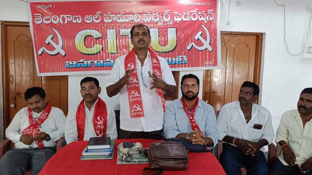 తెలంగాణలో హమాలి కార్మికుల సంక్షేమం కోసం ప్రత్యేక వెల్ఫేర్ బోర్డు ఏర్పాటు చేయాలని డిమాండ్ చేస్తూ ఆల్ హమాలి వర్కర్స్ ఫెడరేషన్ రాష్ట్రవ్యాప్తంగా ఉద్యమానికి సిద్ధమవుతోంది.జనగామలో జరిగిన జిల్లా సమావేశంలో ఫెడరేషన్ రాష్ట్ర ప్రధాన కార్యదర్శి వంగూరు రాములు మాట్లాడుతూ,ఐదు లక్షల మందికిపైగా హమాలి కార్మికులు ఉండి కూడా వారికి కేంద్ర,రాష్ట్ర ప్రభుత్వాల నుంచి సరైన సంక్షేమం లభించడం లేదని విమర్శించారు.హమాలీలకు క్వింటాల్కు రూ.60 వేతనం అమలు,తాడు కట్టే పనికి అదనపు బొనస్,పిఎఫ్,ఈఎస్ఐ,ప్రమాద బీమా వంటి హక్కులను కల్పించాలని డిమాండ్ చేశారు.ఇంటి లేని హమాలీలకు ఇళ్లు ఇవ్వాలని కోరారు.మే 20న కేంద్ర కార్మిక సంఘాల సార్వత్రిక సమ్మెలో హమాలి కార్మికులు విస్తృతంగా పాల్గొనాలని పిలుపునిచ్చారు.సమస్యల పరిష్కారానికి జిల్లా కలెక్టరేట్ల ముందు ధర్నాలు నిర్వహించనున్నట్టు తెలిపారు.